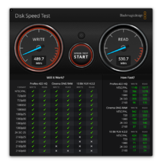 Habe gerade mal getestet... Auf dem Catalina Rechner ist meine SSD für den Netzzugriff freigegeben. Mit dem Disk Speed Test auf dem Mojave Rechner greife ich auf die SSD zu und erreiche folgende Werte: