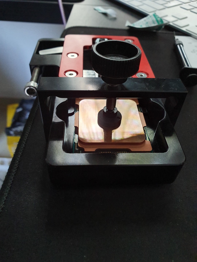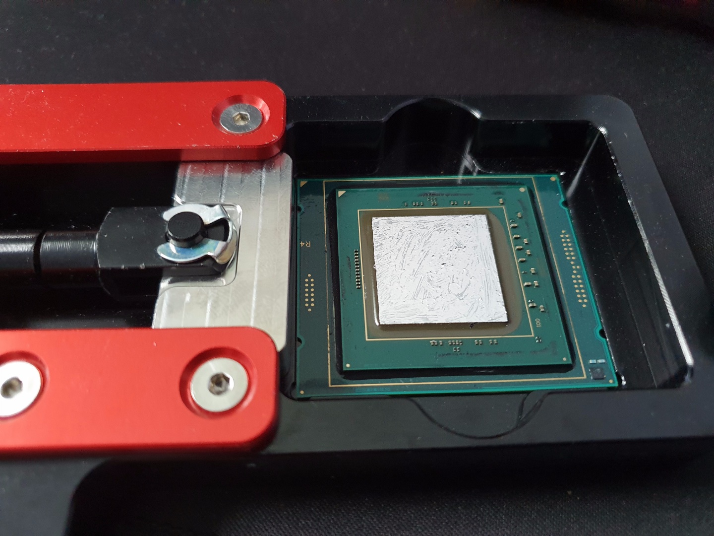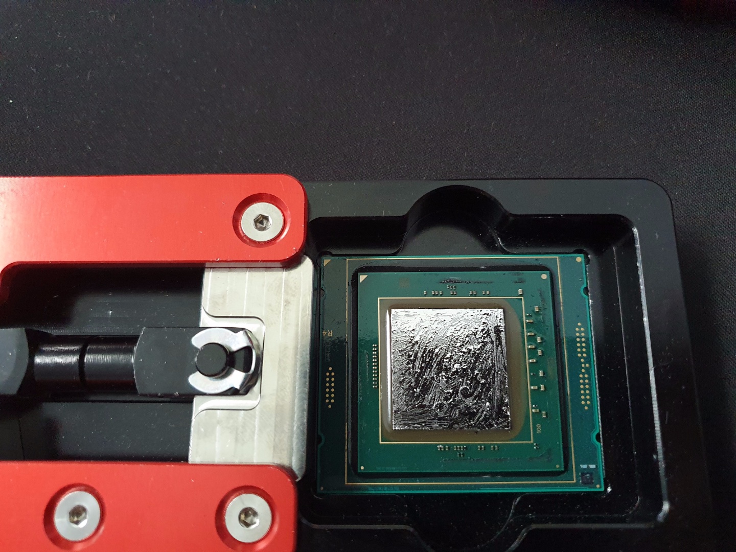 • Manuel Den Kupfer Heatspreader hast du zwar Center mit dem LQMetall versehen, jedoch ist die Die Off Center.