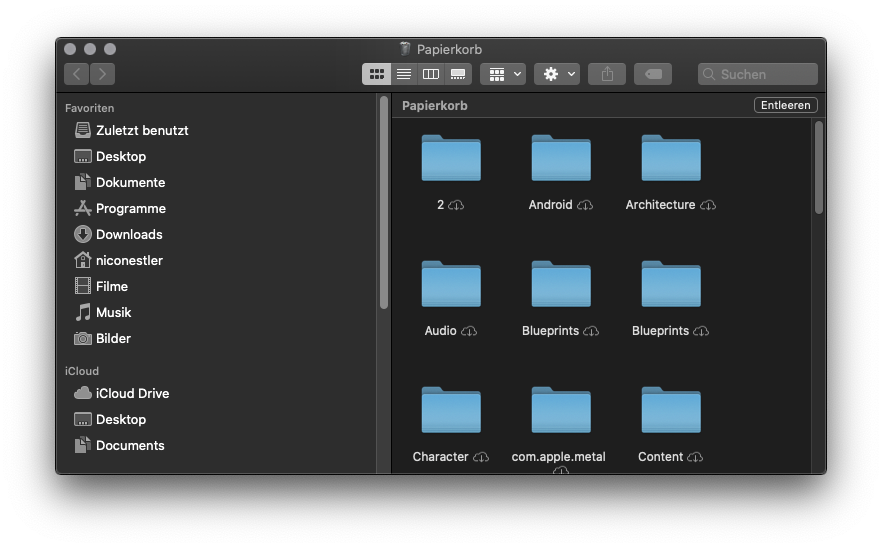 • Versuche in den Papierkorb zu gehen und drücke Rechtsklick auf die einzelnen Elemente und drücke Delete Immediately
