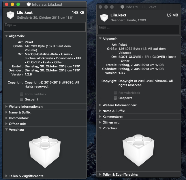 Nicht nur Lilu tauschen sondern alle Kexte welche du hast und hier enthalten sind. Bei Gelegenheit mache ich mal ein neues Paket.