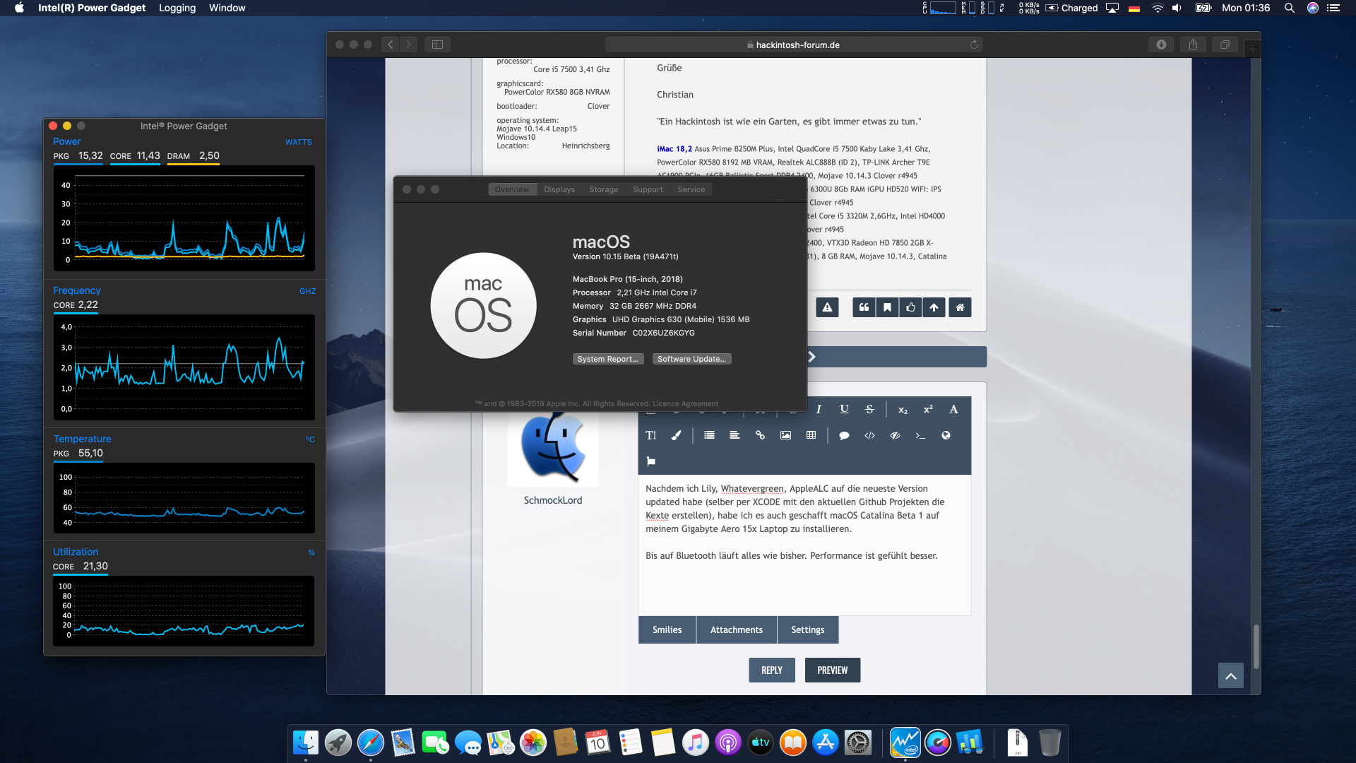 Nachdem ich Lilu, Whatevergreen und AppleALC auf die neueste Version updated habe (selber per XCODE mit den aktuellen Github Projekten die Kexte erstellen), habe ich es auch geschafft macOS Catalina Beta 1 auf meinem Gigabyte Aero 15x Laptop zu installieren.