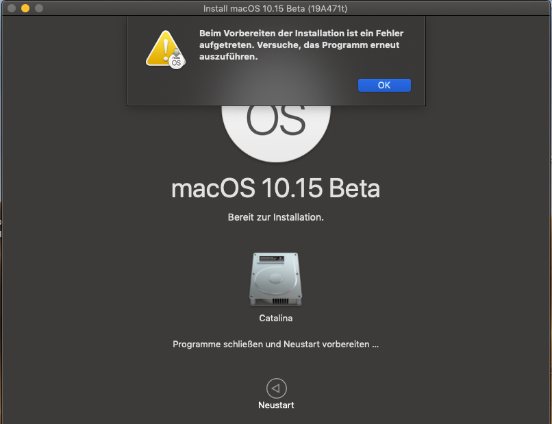 Catalina (Neuinstallation) auf der 2. HDD startet aber sauber.