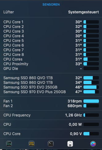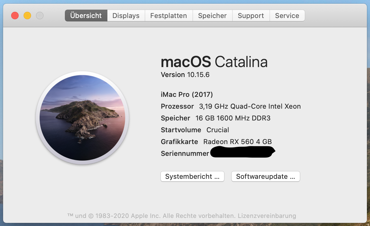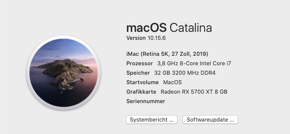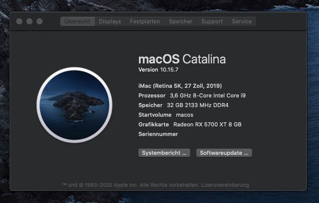 verwendetes SMBios: iMacPro1,1 - ich habs auch mit dem MacPro7,1 probiert, wie Ray Jones in seiner EFI, aber brachte mir gefühlt mehr Nachteile, als Vorteile