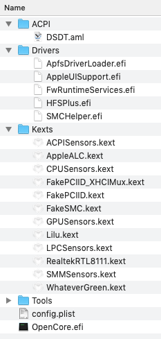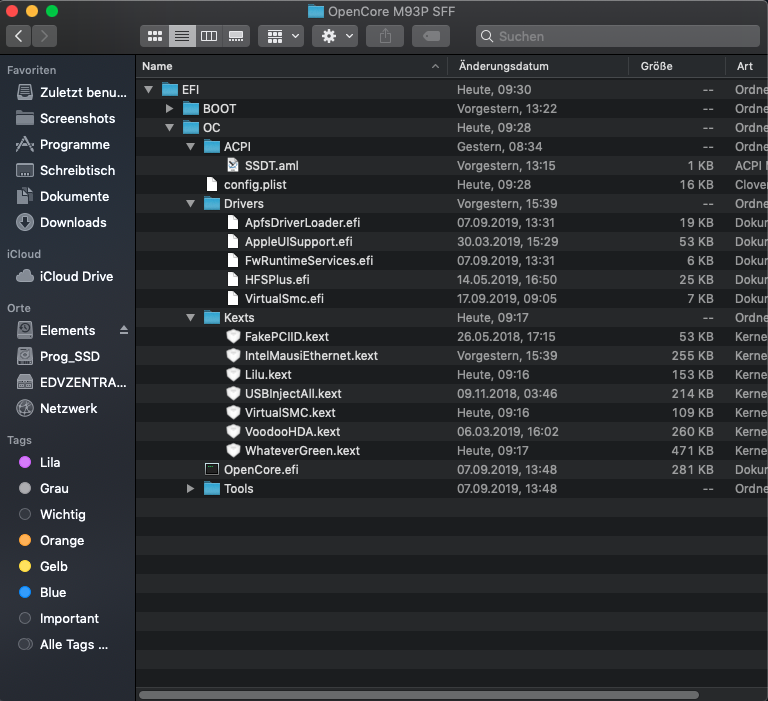 • Mit viel Unterstützung im OpenCore Sammelthread (Hilfe und Diskusion) ist folgende funktionierende EFI entstanden.
