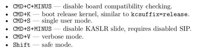 Tastenkombinationen beim Start sind aktiv, so das man z.B. beim halten der OPTION KEY, in die Laufwerksauswahl von macOS kommt.