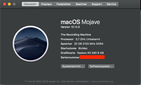 • Verwendetes SMBIOS : MacPro6,1 iMac14,4