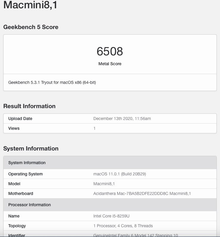  Mac mini Late 2020 – M1 – 16GB RAM – 256GB SSD