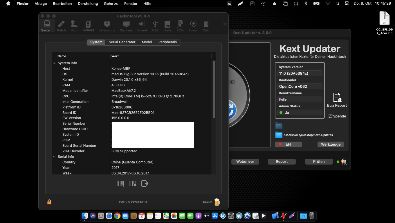 Im Anhang BITTE den noch dazu gehörigen bereinigten OpenCore EFI Ordner als zip