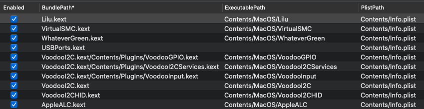 Anbei das OpenCore 0.6.3. EFI für das o.g. Notebook. Soweit tut alles, es ist auf die Reihenfolge der VoodooI2C-Kexte ist zu beachten, dann laden diese auch sauber.