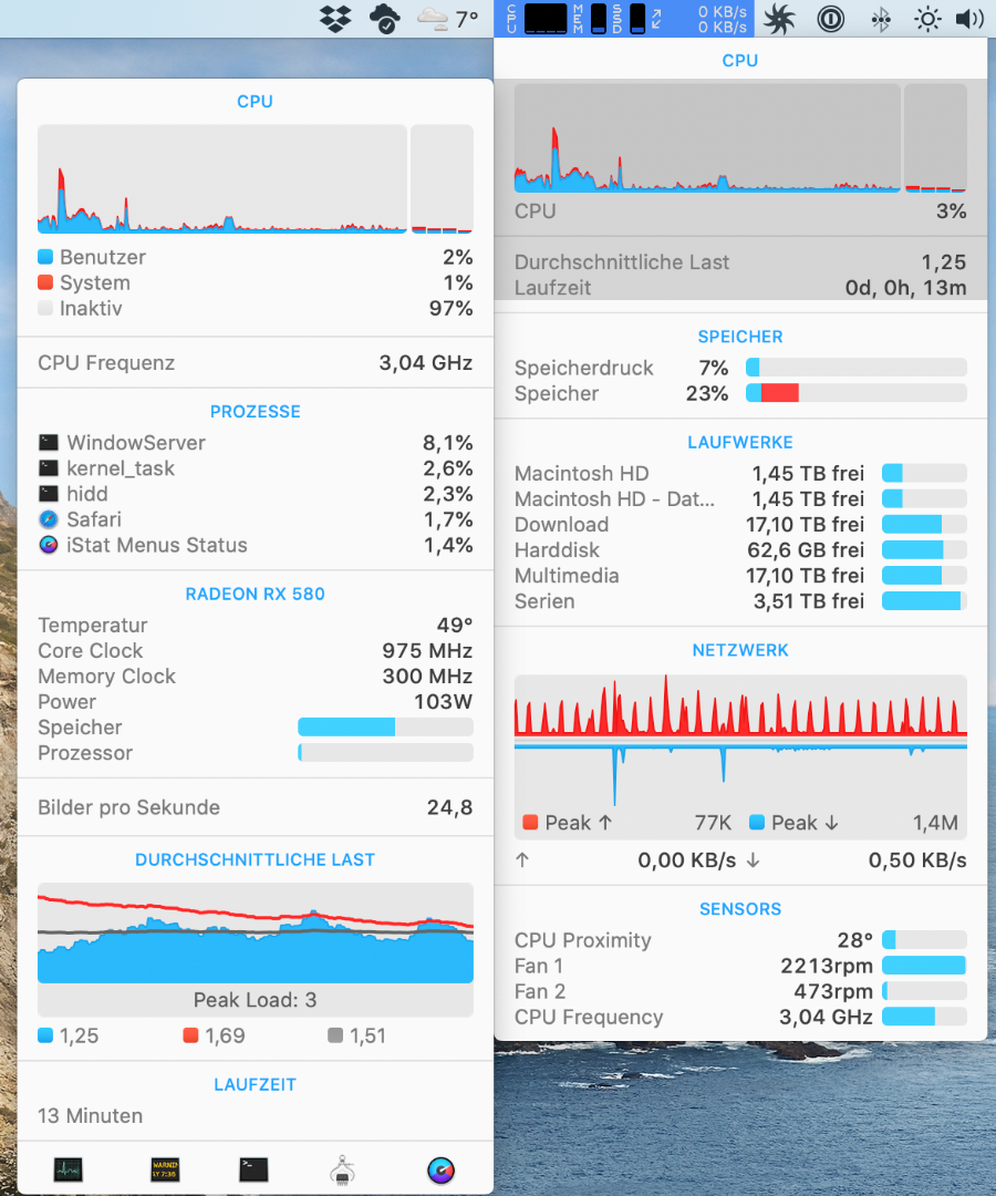 Mit dieser Konfiguration zeigt iStat mir diese Werte: