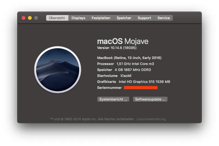 MacBook9,1XiaoMi Air 12,5"(erster XiaoMi im Forum)|M3 6Y30 HD515 |4GB |128 & 250GB SSD |macOS 11.6 |Clover