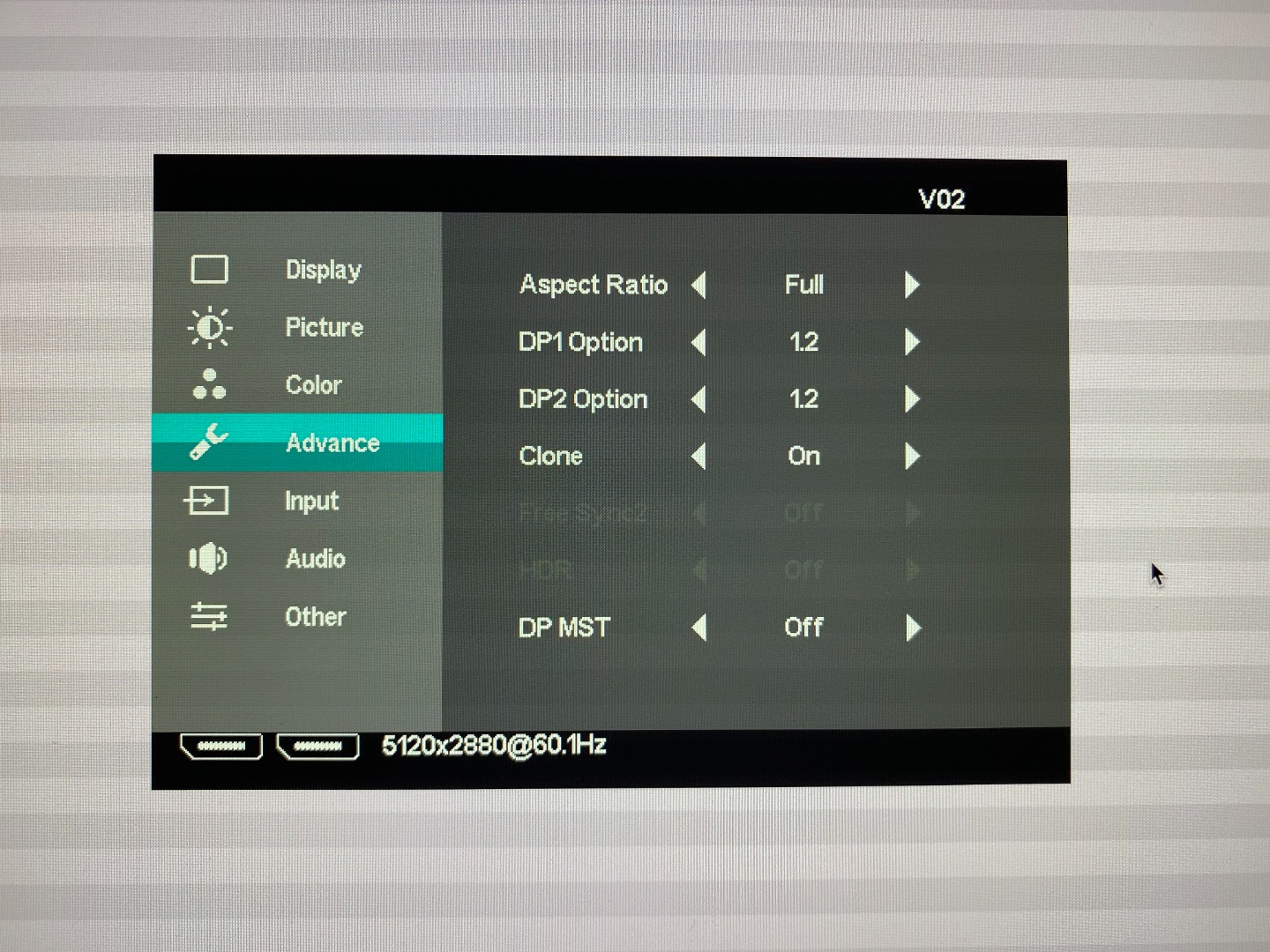 I'm not sure if my Windows settings are wrong or if my control board is not working as designed. I should be able to get 5k60Hz 10 bit colour over 2xDP in Windows with my Nvidia card.