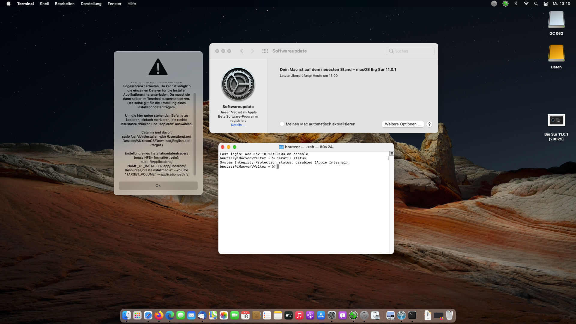 Das Tool also angeworfen und just schon werde ich daran erinnert, dass SIP aktiviert ist. Also die Schleife über die Recovery genommen und SIP deaktiviert.