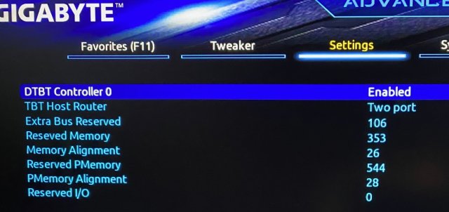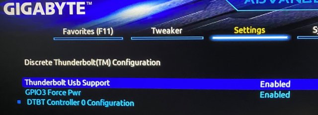 Die Bios-Einstellungen bzgl. Thunderbolt sind ok, siehe Fotos.