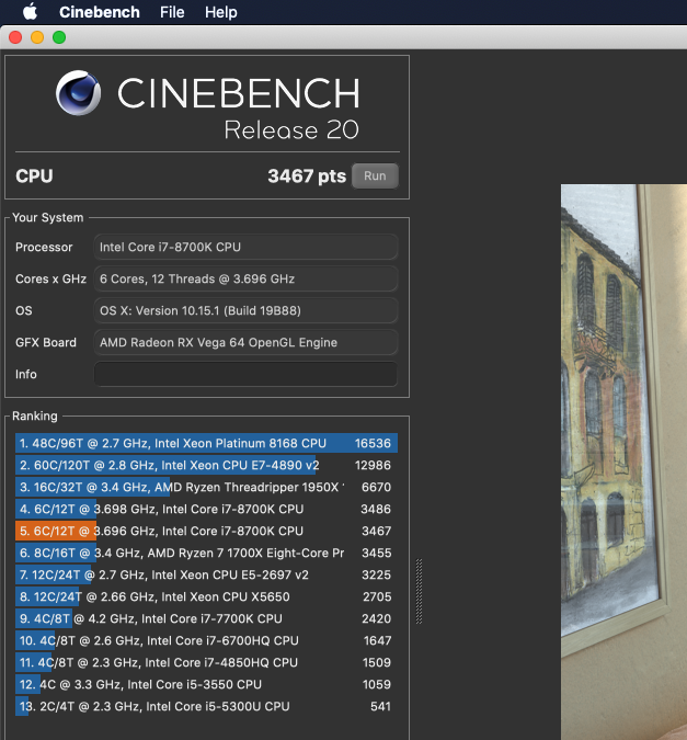 Wie würden Sie die Ergebnisse bewerten?Die CPU-Ergebnisse sind richtig super. Auf diese Werte schafft es mein i9 9900K nicht ganz. Die GPU-Ergebnisse sind zwar nicht so gut wie die von meiner Vega 64 (Open CL 58116, Metal 60309), aber dennoch recht gut, würde ich sagen? Ich habe da sonst keinen Vergleich.