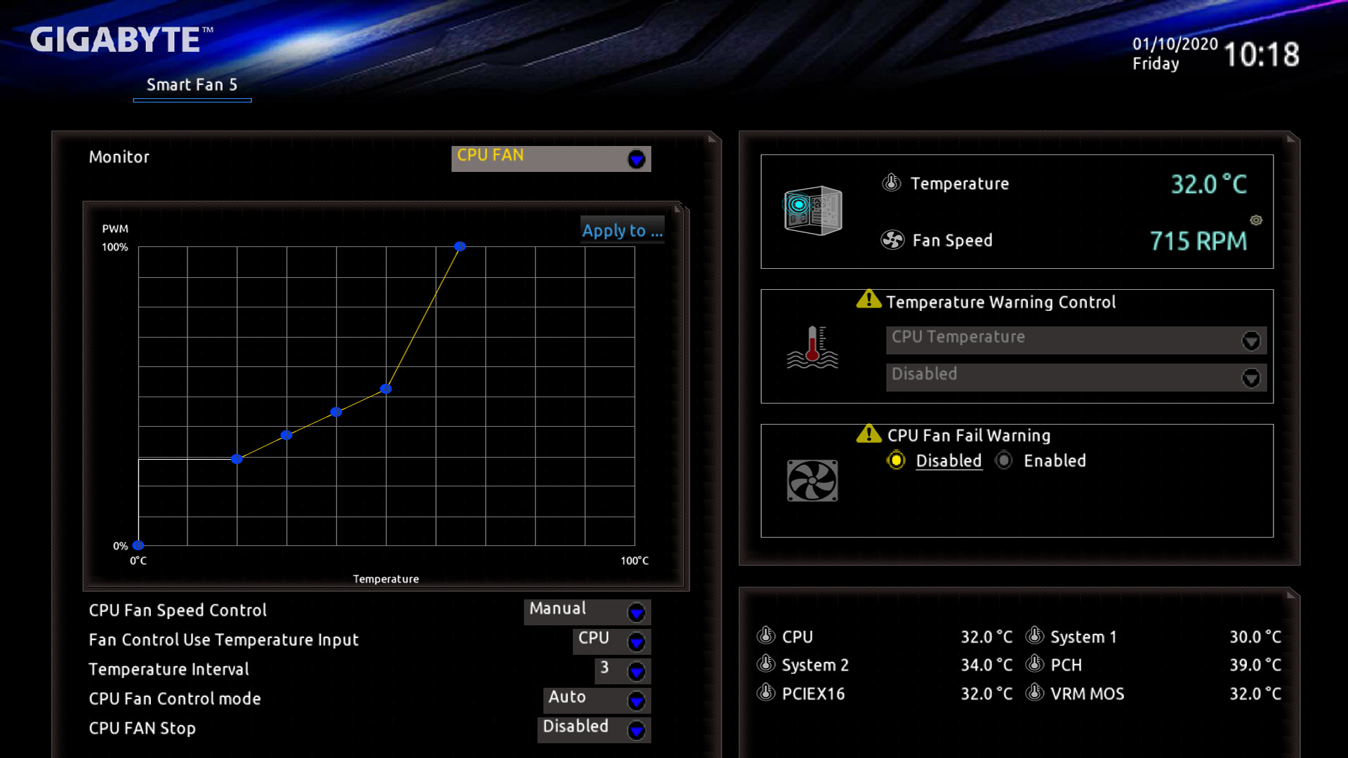Die Kurven sind natürlich auch etwas von den Lüftern abhängig, also ihrer maximalen Drehzahl und ihrer Lautstärke. Ich hab meine unter Windows kalibrieren lassen, mir dann die Werte des leisesten Presets aufgeschrieben und die dann einfach alle ins Bios übertragen (bis auf die Pumpe).