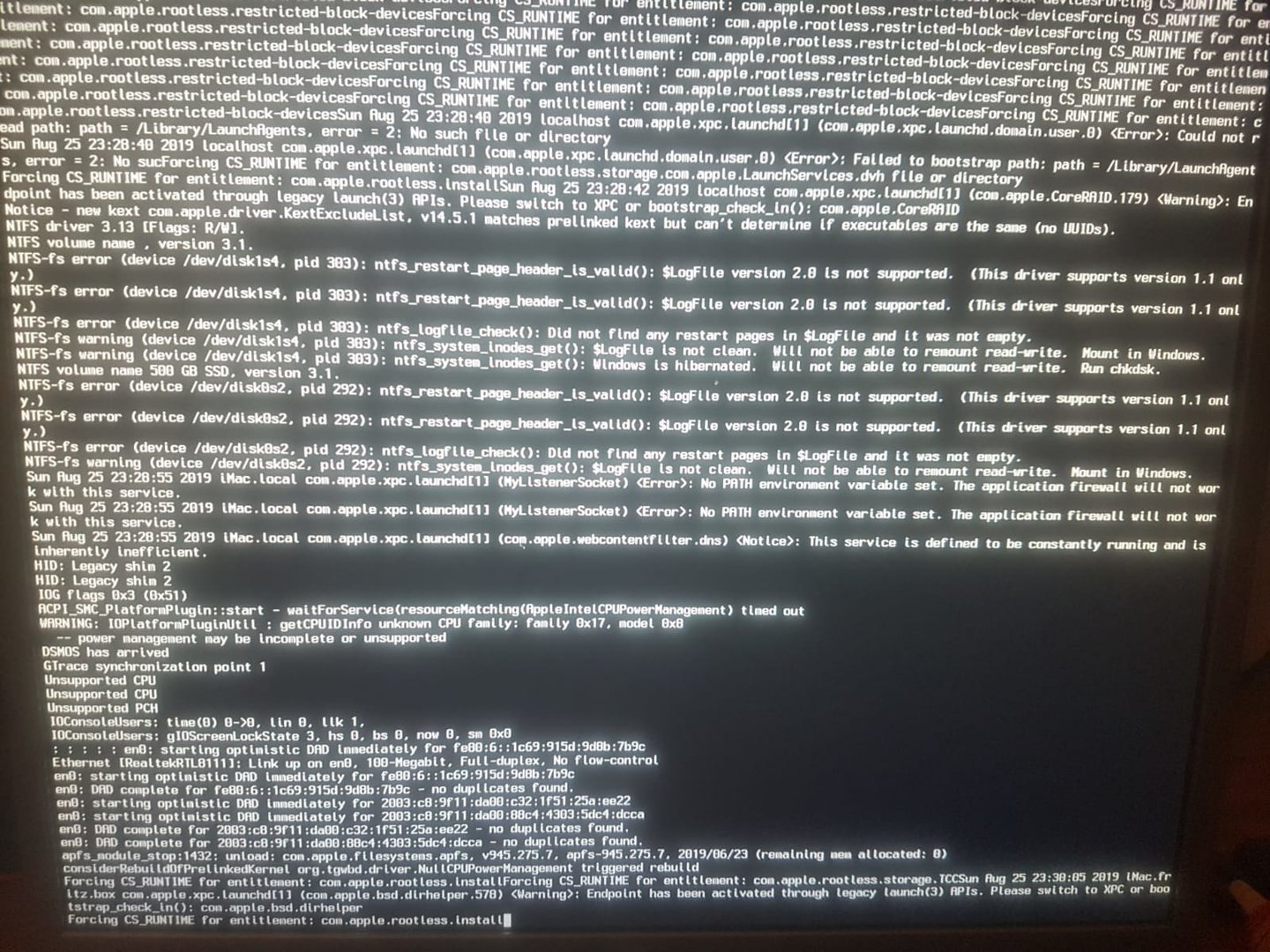 Wenn Ich vom stick boote, hängt das Programm bei einer Fehlermeldung ("Endpoint activated through legacy launch")