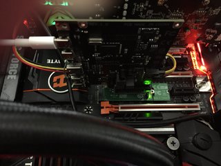 Aber: das Board hat ja 3 M.2 Slots. Also habe ich getrixt: im dritten M.2 Slot sitzt ein M.2-auf-PCIe-X4 Adapter: et voila: THUNDERBOLT am Z170X SOC FORCE