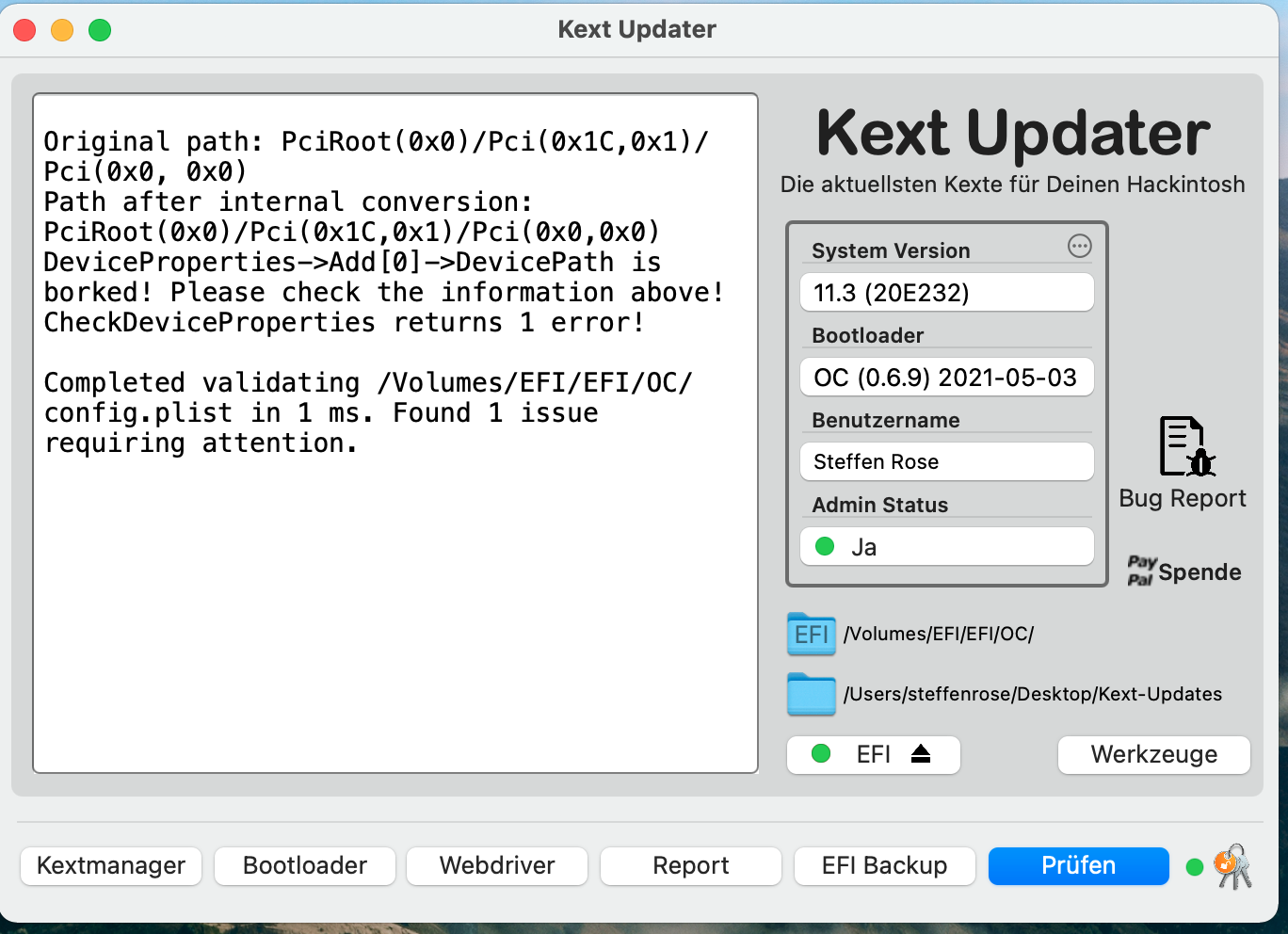 Habe heute das erste Mal die Config.plist mit dem Kext Updater validiert.