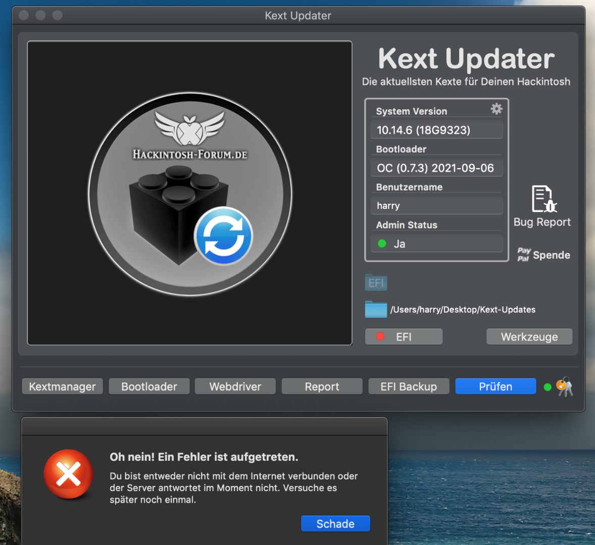 aktueller Kextupdater bringt auf MOJAVE : Oh nein ! Ein Fehler ist aufgetreten (siehe Bild)