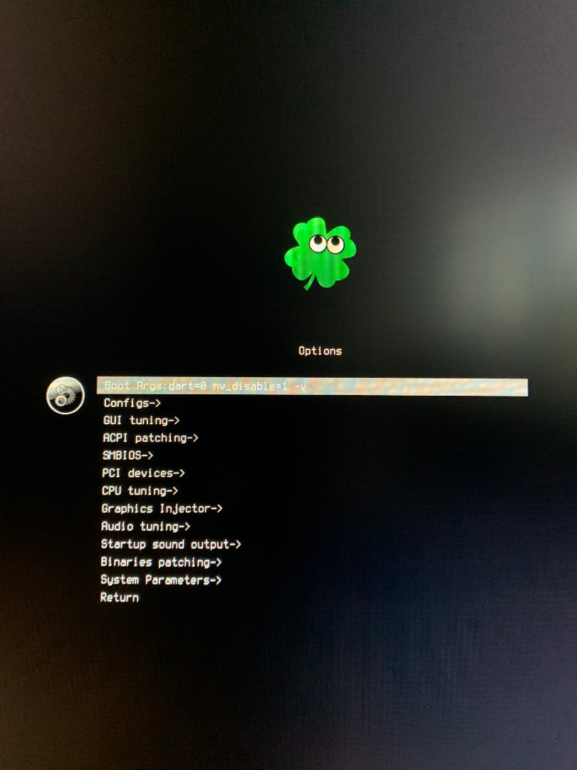 Ich verwende Unibeast 9.2.0 und wenn ich via USB-Stick starte zeigt er mir an, dass Clover 4920 geladen wird. Hier habe ich in den Boot-Optionen am Ende ein -v eingefügt und dann gestartet.