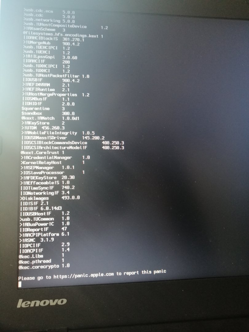 EDIT: Ich hatte vorher die config.plist für den Laptop mit interner Batterie (meiner hat keine). Jetzt scheint es länger zu laufen...