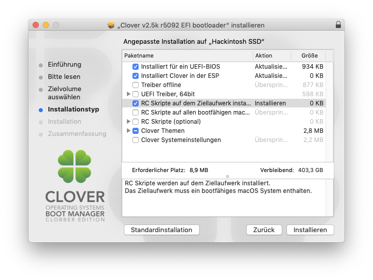 Generell würde ich jetzt als nächsten Schritt dazu übergehen Clover auf meinen USB Stick zu installieren.