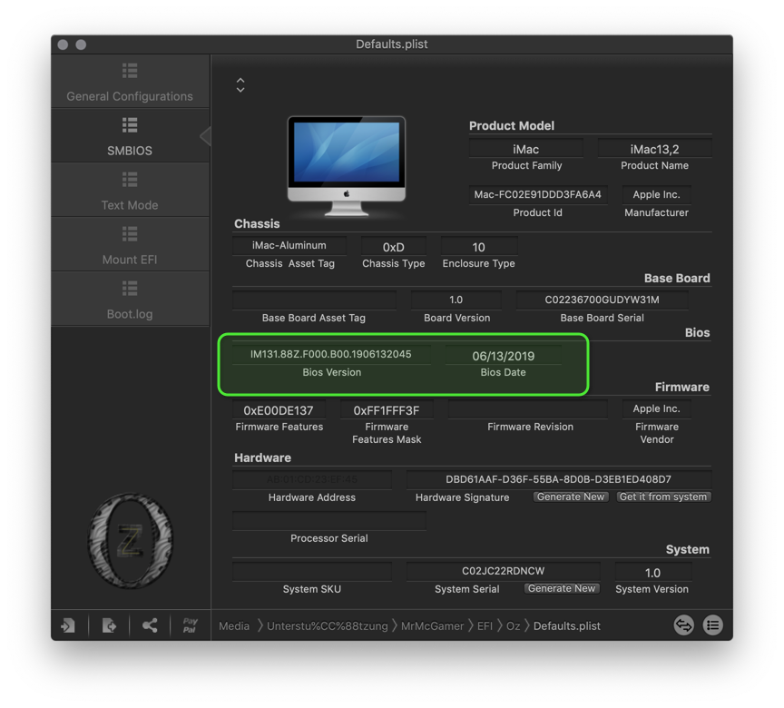 Da die Plist zuerst in der EFI gesucht wird, kann eine aktuelle Version dorhin gelegt werden und man muss nicht immer das ROM neu flashen.