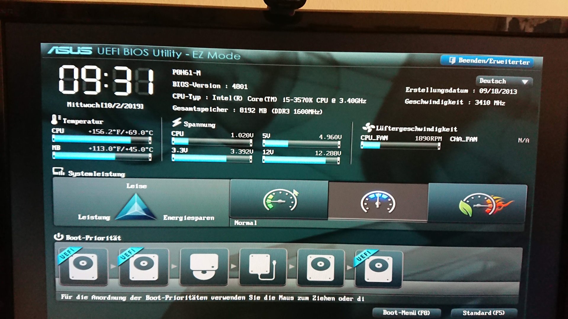 Dein Board ist ein Asus P8H61-M und deine CPU: I5 3570k