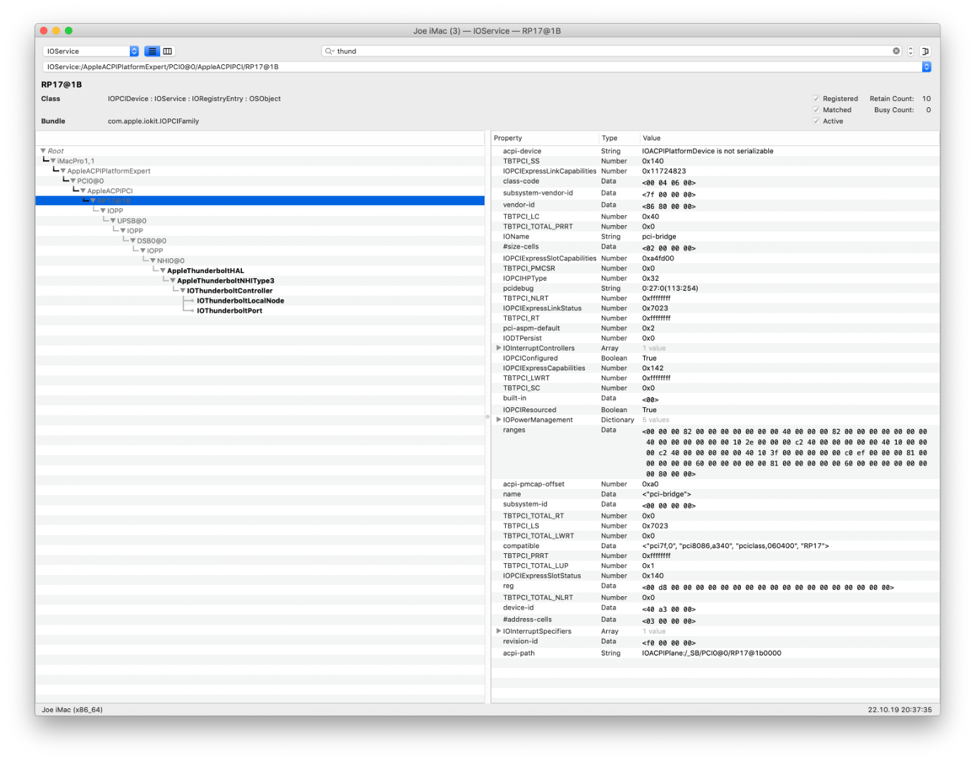 • Ganz klar, an RP17 (PCH, Chipset) hängt deine Titan Ridge. Und dort deine TerraMaster. Mit zwei Partitionen (EFI und "Untitled 2").