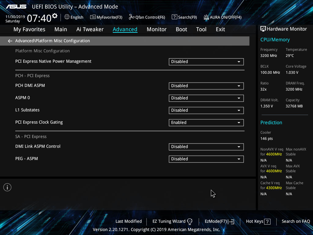 PCH DMI ASPM= L0s oder bei Deaktivierung= Disable