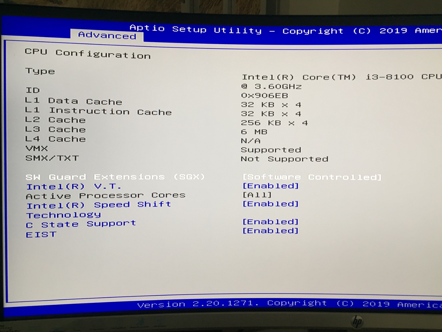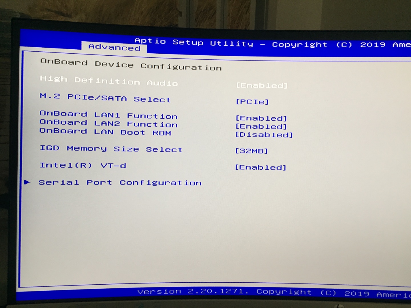 Intel vt-d = Disabled