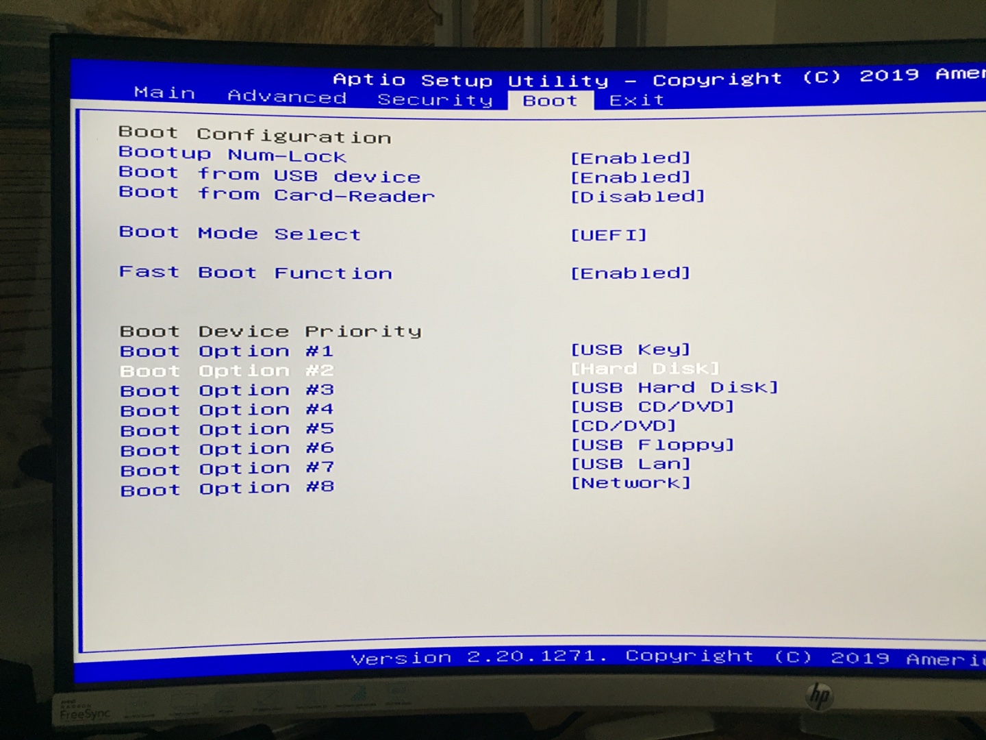 Fast Boot Function = Disabled