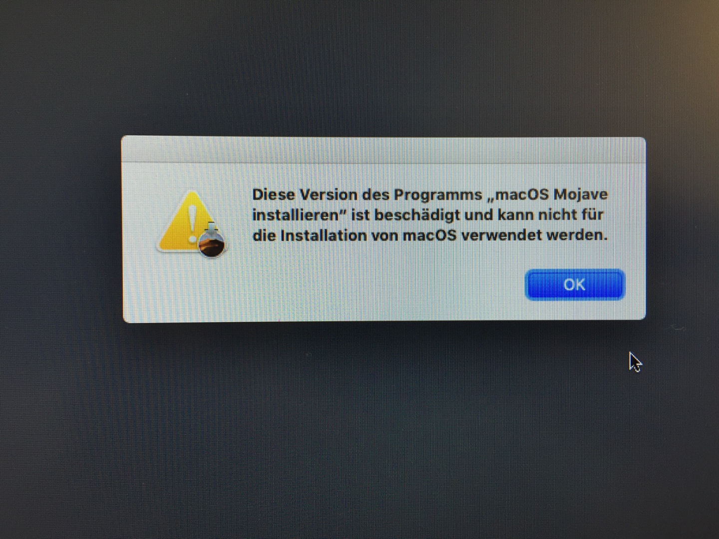 • Ich hatte gestern ein eigenartiges Phänomen, wo die Installation von Mojave ebenfalls hängenblieb. Ich erinnerte mich an einen Post, der abgelaufene Zertifikate der Installer betraf. Ich habe den Mojave-Installer neu aus dem AppStore geladen - und ohne weitere Veränderungen lief die Installation sauber durch.