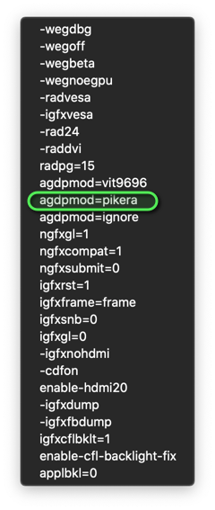 • Teste doch bitte mal das Boot-Argument "agdpmod=pikera"... das könnte dem düsteren Bild entgegenwirken.