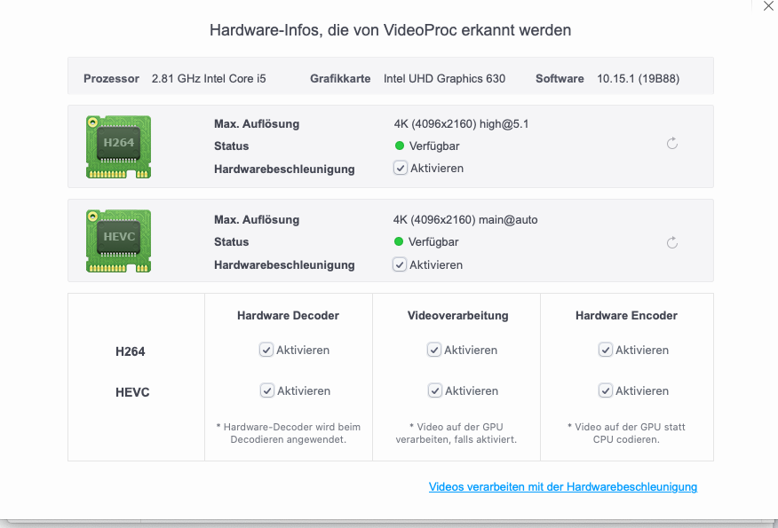 Ich hänge mal Bilder von meinem EFI an. Laut VideoProc ist HEVC aktiviert, vielleicht ist diese Information für etwas gut?