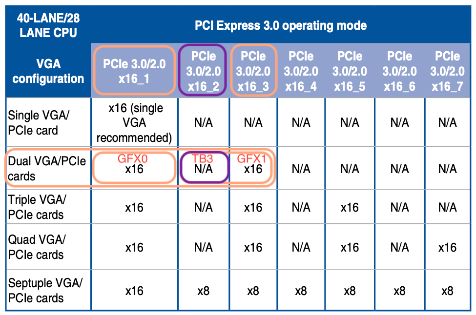Zudem gibt es zumindest die Vorgabe, Thunderbolt zwingend auf Slot2 zu haben …