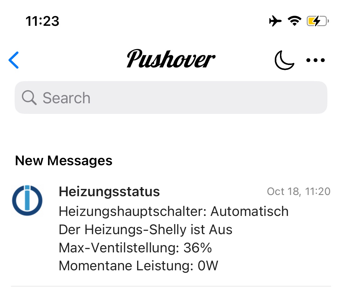 • …ich der alten Gasheizung einen Strommessenden und schaltenden shelly spendiert habe. Dazu ein bisschen ioBroker-Skript und siehe da es klappt von Anfang an, wie gewünscht.