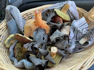 Totentrompeten, Maronenröhrlinge, Edelreizker, Steinpilze. Wurden zu Pilzsauce mit Semmelknödeln verarbeitet - ein Hochgenuss.