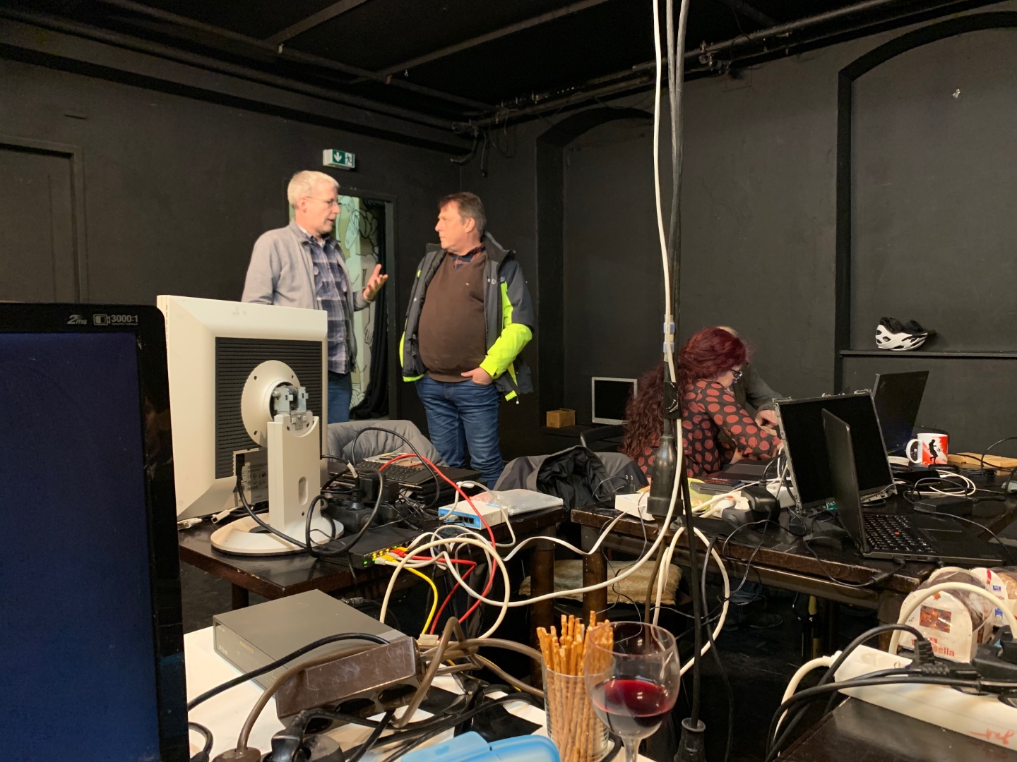Rechner dürfen selbstverständlich wie immer mit, Monitore, Tasten und Mausetiere sowie Kabel für (fast) alle Lebenslagen gibts vor Ort