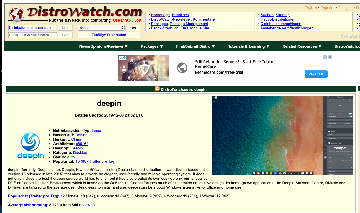 Deepin hatte ich nicht ausprobiert, weil es nicht Debianbasierend ist und jetzt wo ich weiß, dass es mit chinesischer Hand gemacht ist, erst recht nicht.