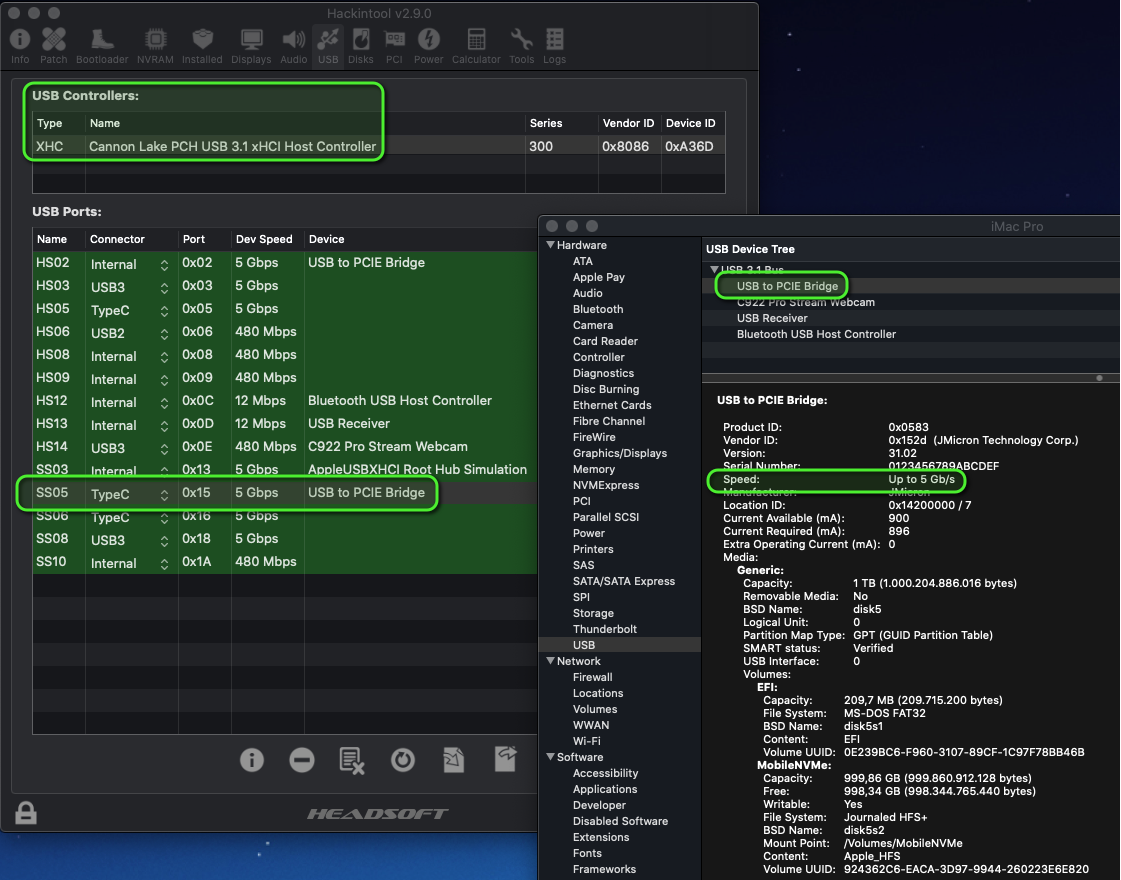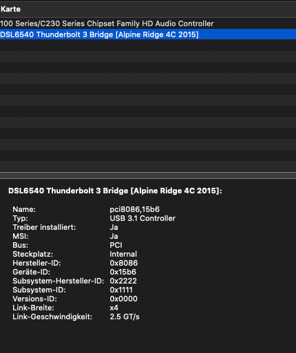 Im Hackintool ist Thunderbolt und USB-C ersichtlich.(PCIe/Pfade etc.)