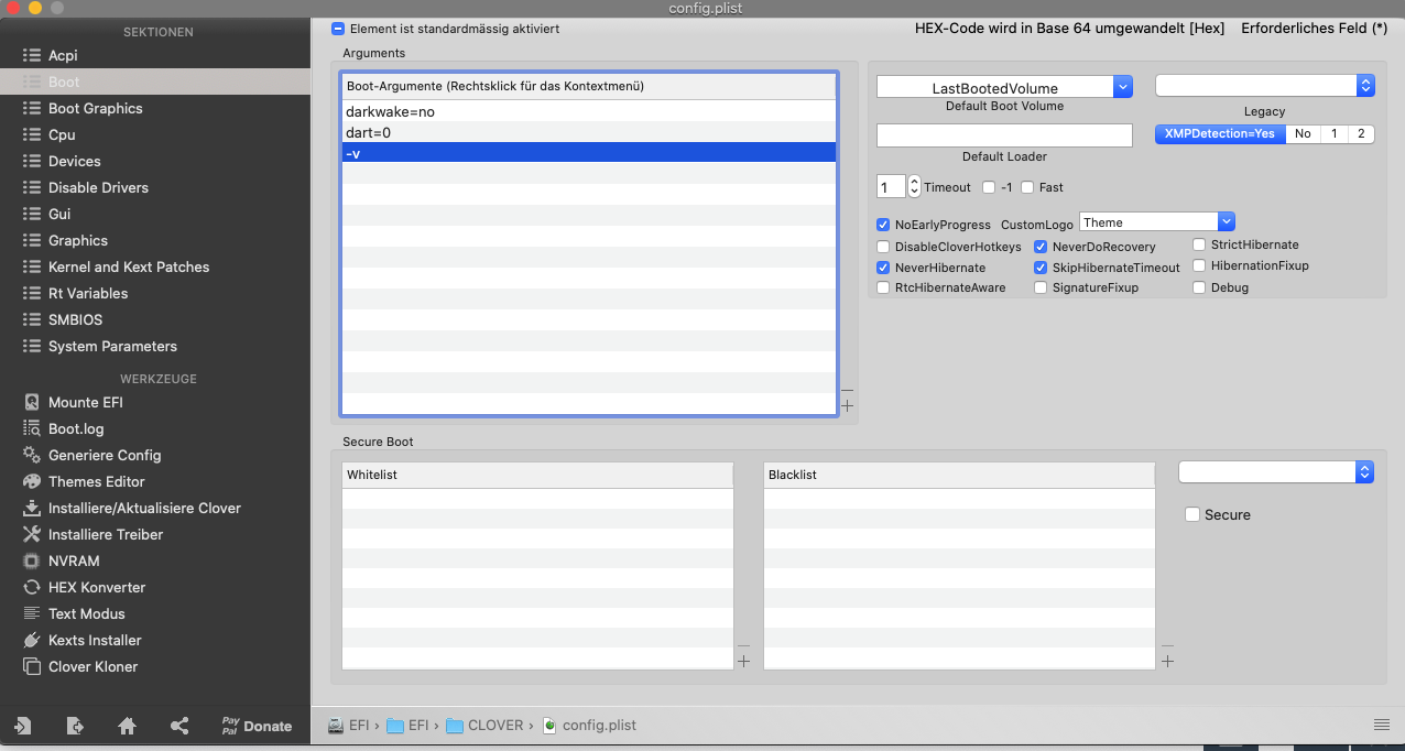 Guten Tag, ich versuche zurzeit mein ersten Hackintosh zum laufen zubekommen und habe folgendes Problem: Ich habe laut Anleitung via Clover einen Bootstick soweit erstellen können. Leider erhalte ich folgende Fehlermeldung. Ich habe meine aktuelle EFI beigefügt. Ich freue mich über jegliche Hilfe. Grüße!