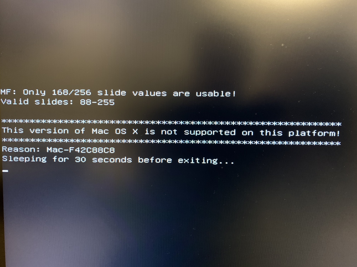 • Guten Tag, ich versuche zurzeit mein ersten Hackintosh zum laufen zubekommen und habe folgendes Problem: Ich habe laut Anleitung via Clover einen Bootstick soweit erstellen können. Leider erhalte ich folgende Fehlermeldung. Ich habe meine aktuelle EFI beigefügt. Ich freue mich über jegliche Hilfe. Grüße!