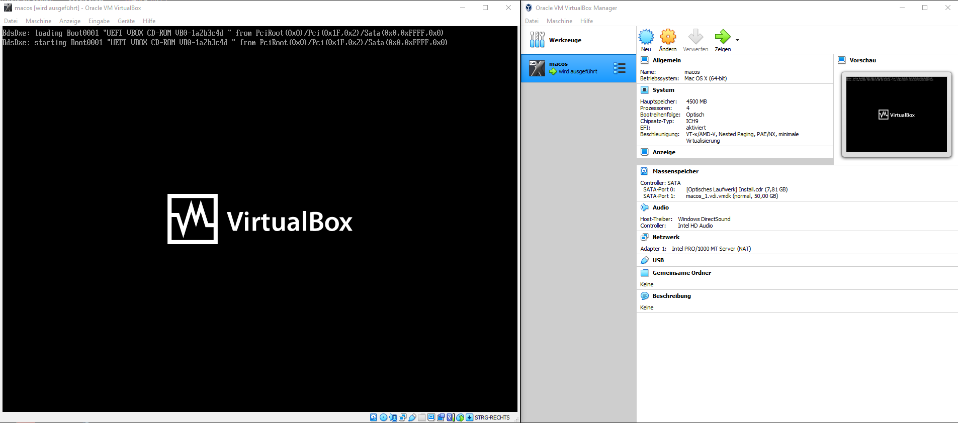 Versuche gerade Catalina mit VirtualBox auf der Windows 10 Partition von meinen Highsierra Hacky zu installieren. Habe schon die verschiedensten Anleitung aus dem Netz durch aber bisher ohne Erfolg. Kennt einer von euch eine Anleitung die funktioniert?