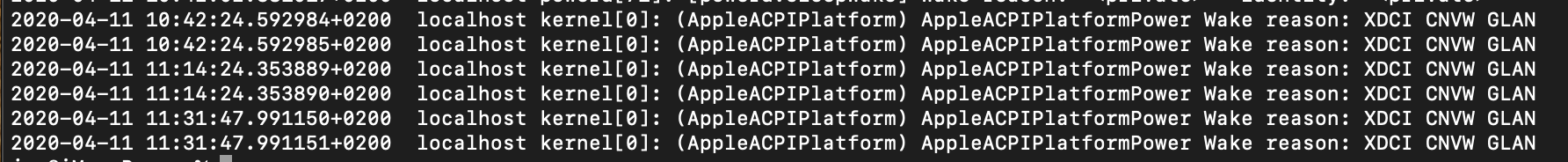 Ein log show --style syslog | fgrep "Wake reason" ergibt das:
