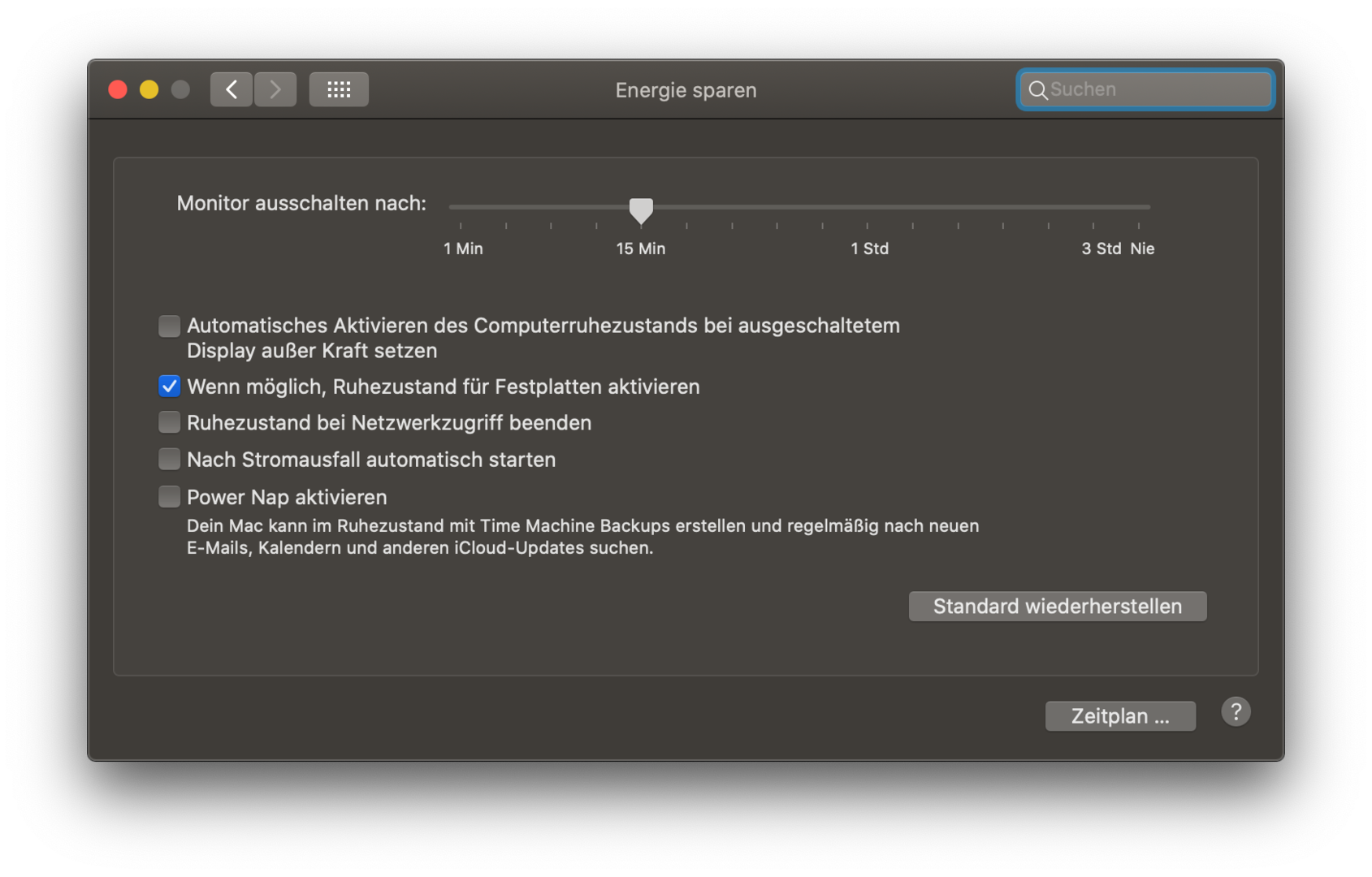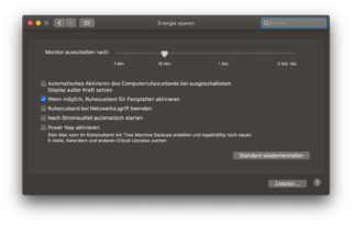 Gibt es da eine Lösung? - Sleep: Der Monitor schaltet sich aus und ein paar Sekunden später auch die Lüfter und der Rechner. Wacht aber nach - nicht gemessen - einer Sekunde wieder auf.