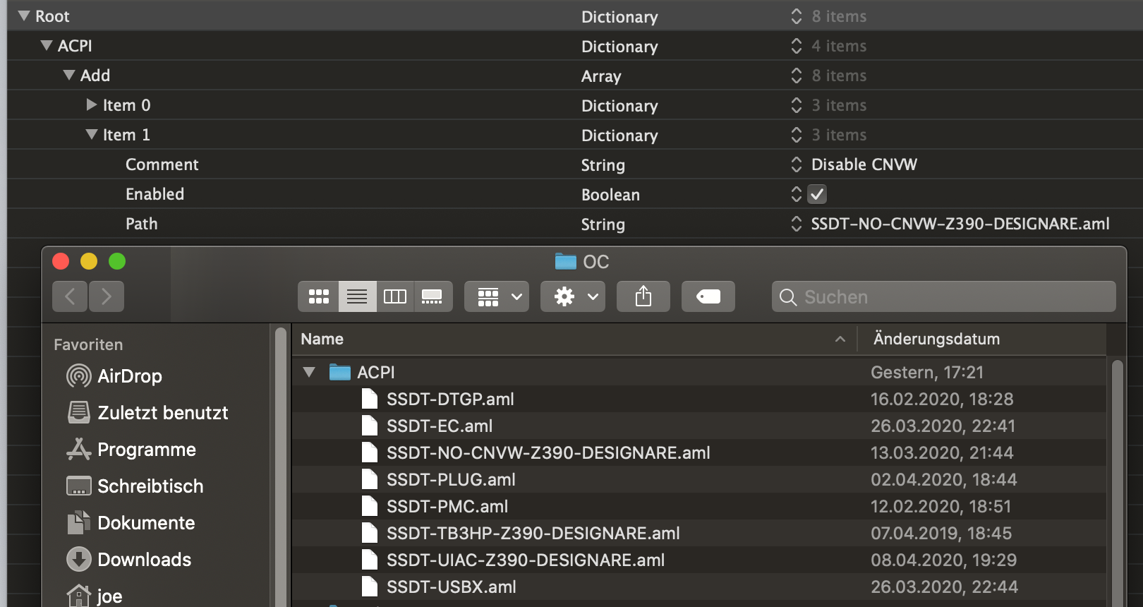 Intel-WiFi-Karte kann es nicht liegen, die ist in den Ordnern hier per SSDT deaktiviert.