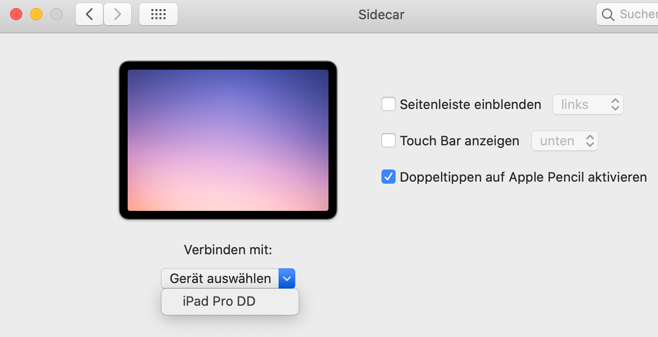 ich nutze mein iPad über Sidecar als Grafiktablett. Beide Geräte sind im gleichen Netz mit gleicher Apple ID. Airdrop funzt und Bluetooth finden sie sich auch. Nur kann Sidecar kein Gerät finden. SMBIOS 19,1 war von Anfang an von mir (deshalb) gewählt. Die Dropdownfeld "Verbinden mit" ist ausgegraut. Bei mir am "normalen" Apple-Laptop ist es aktiv und findet direkt das iPad.