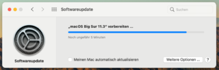 Ich update gerade auf macOS 11.3. Bisher sind so gut wie alle Updates immer einfach sauber durchgelaufen, diesmal ist er schon drei oder vier Mal in der Hälfte des Ladebalkens hängengeblieben, ohne dann noch irgendwas zu machen. Nach jeweils über 20 Minuten warten, ob noch irgendwas passiert, hab ich ihn dann immer manuell abgeschaltet. Jetzt, nachdem ich ihn zum 5. Mal neu gestartet hab, kommt er endlich so weit, dass wenigstens irgendwann mal die Installationsanzeige mit "noch ungefähr x Minuten" erscheint. Jetzt hängt er seit knapp 5 Minuten bei "noch 7 Minuten". Man soll ja geduldig sein … Je nachdem, wie das Update weiter läuft, melde ich mich nachher nochmal hier …